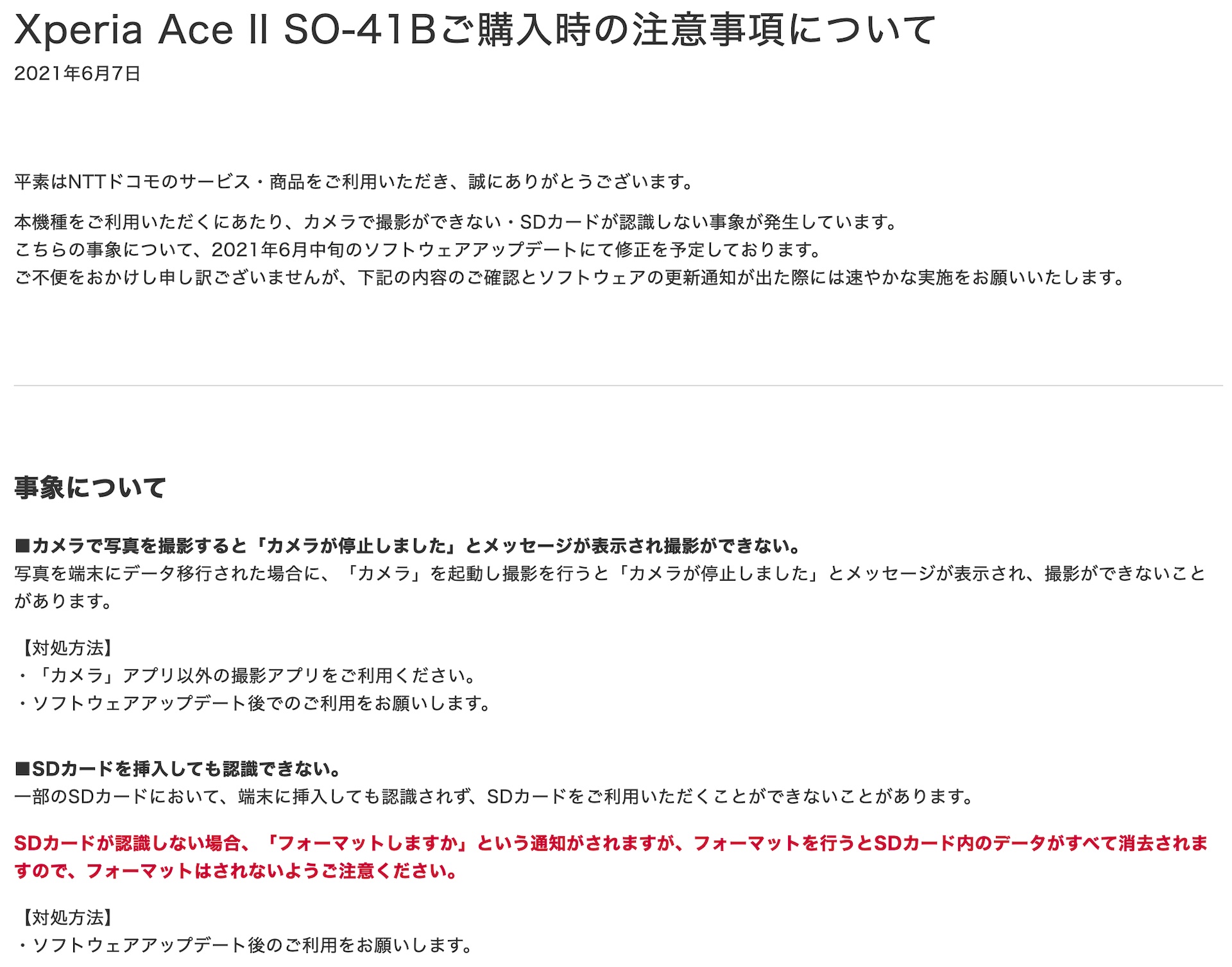 Nttドコモ スタンダードスマホ Xperia Ace Ii So 41b にカメラで撮影ができない Microsdカードが認識しない不具合 6月中旬に修正予定 S Max