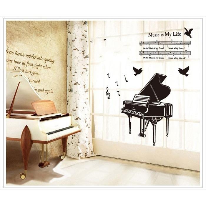 ピアノと楽譜 ウォールステッカー ウォール ステッカー シール 北欧 激安 自然 はがせる 壁紙 子供にも安心 ピアノ 鳥 音符 Ws 191 シルキーウォールステッカー専門店 通販 Yahoo ショッピング